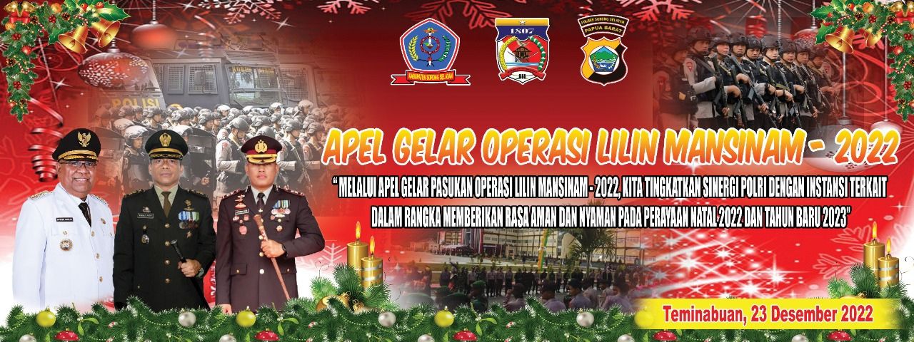 Polres Sorong Selatan dan TNI Kodim 1807/Sorong Selatan melakukan apel gelar apel pasukan dalam rangka operasi Lilin Mansinam 2022 dan menyambut Natal dan Tahun Baru.Kegiatan tersebut diawali dengan p...
